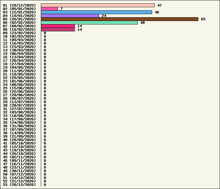 | Logiciel | Semaine 08 | Mois 02 | Année 2026 | Total | | Anti Yeux rouges | 0 | 0 | 4 | 134329 | | AutoMail | 1 | 12 | 36 | 1865 | | Autorun | 0 | 0 | 5 | 2747 | | AxelCodBar (Codes barres) | 9 | 24 | 59 | 17633 | | AxelFTP | 0 | 1 | 5 | 1823 | | AxelTime | 1 | 14 | 39 | 6847 | | AxelWebCam | 0 | 0 | 0 | 8249 | | Boulier | 0 | 0 | 5 | 1597 | | Castet | 0 | 0 | 3 | 1105 | | Chiffres | 0 | 0 | 3 | 1876 | | Compteur Internet | 0 | 2 | 8 | 2329 | | Crédits | 0 | 0 | 2 | 2006 | | Espérance de vie | 0 | 0 | 3 | 3558 | | File Renamor | 0 | 0 | 4 | 1980 | | FindReplaceInFiles | 0 | 0 | 5 | 1147 | | Matricielle | 0 | 0 | 6 | 4573 | | Mosaic Maker | 0 | 0 | 2 | 3052 | | MultiClip | 0 | 0 | 5 | 2119 | | MultiMail | 0 | 0 | 1 | 1081 | | MultiZip | 0 | 0 | 3 | 1570 | | MusicStart | 0 | 1 | 5 | 925 | | RepPrinter | 0 | 0 | 4 | 4113 | | Synchronizor | 0 | 0 | 4 | 3942 | | Winetik | 0 | 0 | 0 | 1008 | | Winfish | 0 | 0 | 0 | 673 | | Wintab | 1 | 3 | 4 | 3794 | | WorPad Axel | 0 | 0 | 3 | 154 | | Yaskifo! analysor | 0 | 0 | 0 | 90 | | Total | 12 | 57 | 218 | 216185 |
