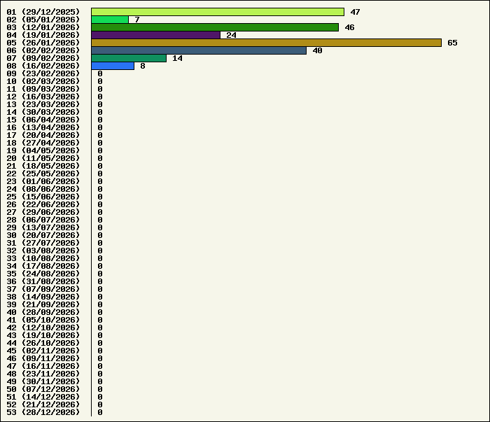| Logiciel | Semaine 08 | Mois 02 | Année 2026 | Total | | Anti Yeux rouges | 0 | 0 | 4 | 134329 | | AutoMail | 0 | 11 | 35 | 1864 | | Autorun | 0 | 0 | 5 | 2747 | | AxelCodBar (Codes barres) | 8 | 23 | 58 | 17632 | | AxelFTP | 0 | 1 | 5 | 1823 | | AxelTime | 0 | 13 | 38 | 6846 | | AxelWebCam | 0 | 0 | 0 | 8249 | | Boulier | 0 | 0 | 5 | 1597 | | Castet | 0 | 0 | 3 | 1105 | | Chiffres | 0 | 0 | 3 | 1876 | | Compteur Internet | 0 | 2 | 8 | 2329 | | Crédits | 0 | 0 | 2 | 2006 | | Espérance de vie | 0 | 0 | 3 | 3558 | | File Renamor | 0 | 0 | 4 | 1980 | | FindReplaceInFiles | 0 | 0 | 5 | 1147 | | Matricielle | 0 | 0 | 6 | 4573 | | Mosaic Maker | 0 | 0 | 2 | 3052 | | MultiClip | 0 | 0 | 5 | 2119 | | MultiMail | 0 | 0 | 1 | 1081 | | MultiZip | 0 | 0 | 3 | 1570 | | MusicStart | 0 | 1 | 5 | 925 | | RepPrinter | 0 | 0 | 4 | 4113 | | Synchronizor | 0 | 0 | 4 | 3942 | | Winetik | 0 | 0 | 0 | 1008 | | Winfish | 0 | 0 | 0 | 673 | | Wintab | 0 | 2 | 3 | 3793 | | WorPad Axel | 0 | 0 | 3 | 154 | | Yaskifo! analysor | 0 | 0 | 0 | 90 | | Total | 8 | 53 | 214 | 216181 |