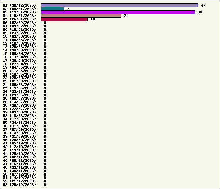 | Logiciel | Semaine 05 | Mois 01 | Année 2026 | Total | | Anti Yeux rouges | 0 | 4 | 4 | 134329 | | AutoMail | 3 | 16 | 16 | 1845 | | Autorun | 0 | 5 | 5 | 2747 | | AxelCodBar (Codes barres) | 5 | 21 | 21 | 17595 | | AxelFTP | 0 | 3 | 3 | 1821 | | AxelTime | 3 | 17 | 17 | 6825 | | AxelWebCam | 0 | 0 | 0 | 8249 | | Boulier | 0 | 5 | 5 | 1597 | | Castet | 0 | 3 | 3 | 1105 | | Chiffres | 0 | 3 | 3 | 1876 | | Compteur Internet | 0 | 5 | 5 | 2326 | | Crédits | 0 | 2 | 2 | 2006 | | Espérance de vie | 0 | 2 | 2 | 3557 | | File Renamor | 0 | 4 | 4 | 1980 | | FindReplaceInFiles | 0 | 5 | 5 | 1147 | | Matricielle | 0 | 6 | 6 | 4573 | | Mosaic Maker | 0 | 2 | 2 | 3052 | | MultiClip | 0 | 5 | 5 | 2119 | | MultiMail | 0 | 1 | 1 | 1081 | | MultiZip | 0 | 2 | 2 | 1569 | | MusicStart | 0 | 4 | 4 | 924 | | RepPrinter | 0 | 4 | 4 | 4113 | | Synchronizor | 0 | 3 | 3 | 3941 | | Winetik | 0 | 0 | 0 | 1008 | | Winfish | 0 | 0 | 0 | 673 | | Wintab | 0 | 0 | 0 | 3790 | | WorPad Axel | 0 | 3 | 3 | 154 | | Yaskifo! analysor | 0 | 0 | 0 | 90 | | Total | 11 | 125 | 125 | 216092 |