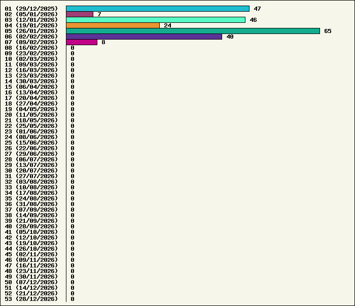 | Logiciel | Semaine 07 | Mois 02 | Année 2026 | Total | | Anti Yeux rouges | 0 | 0 | 4 | 134329 | | AutoMail | 0 | 9 | 33 | 1862 | | Autorun | 0 | 0 | 5 | 2747 | | AxelCodBar (Codes barres) | 6 | 14 | 49 | 17623 | | AxelFTP | 1 | 1 | 5 | 1823 | | AxelTime | 0 | 12 | 37 | 6845 | | AxelWebCam | 0 | 0 | 0 | 8249 | | Boulier | 0 | 0 | 5 | 1597 | | Castet | 0 | 0 | 3 | 1105 | | Chiffres | 0 | 0 | 3 | 1876 | | Compteur Internet | 0 | 1 | 7 | 2328 | | Crédits | 0 | 0 | 2 | 2006 | | Espérance de vie | 0 | 0 | 3 | 3558 | | File Renamor | 0 | 0 | 4 | 1980 | | FindReplaceInFiles | 0 | 0 | 5 | 1147 | | Matricielle | 0 | 0 | 6 | 4573 | | Mosaic Maker | 0 | 0 | 2 | 3052 | | MultiClip | 0 | 0 | 5 | 2119 | | MultiMail | 0 | 0 | 1 | 1081 | | MultiZip | 0 | 0 | 3 | 1570 | | MusicStart | 0 | 0 | 4 | 924 | | RepPrinter | 0 | 0 | 4 | 4113 | | Synchronizor | 0 | 0 | 4 | 3942 | | Winetik | 0 | 0 | 0 | 1008 | | Winfish | 0 | 0 | 0 | 673 | | Wintab | 1 | 2 | 3 | 3793 | | WorPad Axel | 0 | 0 | 3 | 154 | | Yaskifo! analysor | 0 | 0 | 0 | 90 | | Total | 8 | 39 | 200 | 216167 |