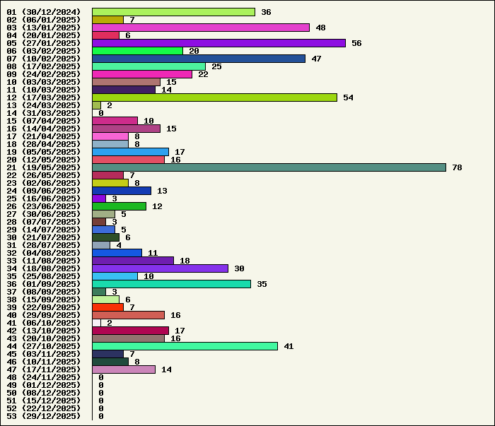 | Logiciel | Semaine 47 | Mois 11 | Année 2025 | Total | | AxelCruciverbiste | 1 | 4 | 40 | 489 | | AxelPass (Mots de passe) | 1 | 2 | 36 | 482 | | Bilan de compétences | 1 | 7 | 43 | 1028 | | Biorythm 3.0 | 0 | 3 | 41 | 665 | | Calculatrice | 0 | 0 | 0 | 246 | | Carnet d'adresses | 1 | 10 | 82 | 1580 | | CDPhotoAlbum | 0 | 0 | 0 | 191 | | Chiffres et lettres | 1 | 5 | 38 | 797 | | Diaporama Maker | 0 | 0 | 0 | 407 | | Dominos | 1 | 3 | 38 | 895 | | Dominos (english version) | 0 | 0 | 0 | 338 | | Emploi du temps | 0 | 0 | 3 | 259 | | Etiquettes PRO | 1 | 4 | 51 | 3311 | | Formulaires PRO | 1 | 3 | 68 | 857 | | Géomancie | 0 | 0 | 0 | 312 | | Gesnotes | 0 | 0 | 0 | 392 | | GestComptes | 1 | 4 | 71 | 5438 | | Graphologie | 1 | 1 | 109 | 1268 | | Le journal de votre naissance | 0 | 1 | 33 | 4400 | | Maths | 0 | 0 | 0 | 195 | | Métro | 0 | 0 | 0 | 202 | | Moyennes | 0 | 0 | 0 | 100 | | MP3 audio creator | 0 | 0 | 0 | 512 | | Organigrammes | 0 | 0 | 0 | 239 | | Papwrite | 0 | 0 | 0 | 37 | | Pense-bête | 1 | 9 | 48 | 571 | | Photocopieur | 1 | 7 | 39 | 751 | | PhotoNet | 1 | 3 | 39 | 503 | | PhotoNet édition spéciale Artprod | 0 | 0 | 0 | 1 | | PhotoPrinter | 1 | 1 | 29 | 755 | | Planning | 0 | 0 | 0 | 197 | | Posters | 0 | 0 | 3 | 1220 | | Winbase | 0 | 0 | 0 | 284 | | Total | 14 | 67 | 811 | 28922 |