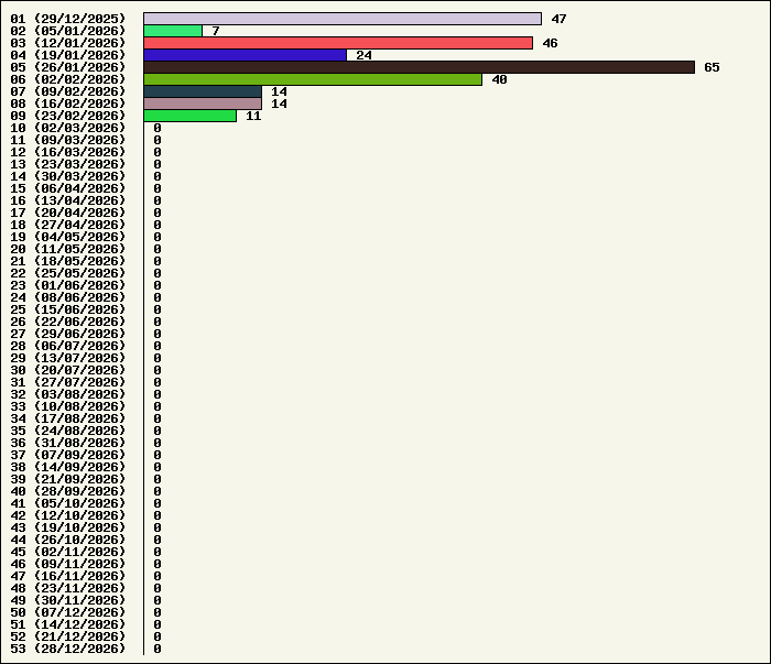 | Logiciel | Semaine 49 | Mois 12 | Année 2025 | Total | | Anti Yeux rouges | 0 | 0 | 54 | 134323 | | AutoMail | 1 | 1 | 80 | 1816 | | Autorun | 0 | 0 | 37 | 2740 | | AxelCodBar (Codes barres) | 5 | 5 | 240 | 17555 | | AxelFTP | 0 | 0 | 43 | 1816 | | AxelTime | 1 | 1 | 80 | 6787 | | AxelWebCam | 0 | 0 | 3 | 8248 | | Boulier | 0 | 0 | 42 | 1589 | | Castet | 0 | 0 | 35 | 1100 | | Chiffres | 0 | 0 | 41 | 1868 | | Compteur Internet | 1 | 1 | 64 | 2320 | | Crédits | 0 | 0 | 38 | 2003 | | Espérance de vie | 1 | 1 | 60 | 3555 | | File Renamor | 0 | 0 | 43 | 1971 | | FindReplaceInFiles | 0 | 0 | 36 | 1137 | | Matricielle | 0 | 0 | 45 | 4564 | | Mosaic Maker | 0 | 0 | 35 | 3049 | | MultiClip | 0 | 0 | 36 | 2111 | | MultiMail | 1 | 1 | 41 | 1079 | | MultiZip | 0 | 0 | 38 | 1564 | | MusicStart | 0 | 0 | 44 | 920 | | RepPrinter | 0 | 0 | 61 | 4107 | | Synchronizor | 1 | 1 | 52 | 3930 | | Winetik | 0 | 0 | 0 | 1008 | | Winfish | 0 | 0 | 0 | 673 | | Wintab | 0 | 0 | 24 | 3787 | | WorPad Axel | 0 | 0 | 39 | 148 | | Yaskifo! analysor | 0 | 0 | 0 | 90 | | Total | 11 | 11 | 1311 | 215858 |