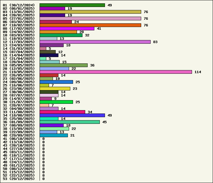 Logiciel | Semaine 40 | Mois 10 | Année 2025 | Total | Anti Yeux rouges | 1 | 0 | 46 | 134315 | AutoMail | 2 | 1 | 58 | 1794 | Autorun | 1 | 0 | 32 | 2735 | AxelCodBar (Codes barres) | 3 | 1 | 198 | 17513 | AxelFTP | 1 | 0 | 36 | 1809 | AxelTime | 2 | 1 | 62 | 6769 | AxelWebCam | 0 | 0 | 3 | 8248 | Boulier | 1 | 0 | 38 | 1585 | Castet | 1 | 0 | 31 | 1096 | Chiffres | 1 | 0 | 35 | 1862 | Compteur Internet | 0 | 0 | 55 | 2311 | Crédits | 1 | 0 | 33 | 1998 | Espérance de vie | 1 | 0 | 50 | 3545 | File Renamor | 0 | 0 | 34 | 1962 | FindReplaceInFiles | 1 | 0 | 32 | 1133 | Matricielle | 1 | 0 | 37 | 4556 | Mosaic Maker | 0 | 0 | 31 | 3045 | MultiClip | 1 | 0 | 32 | 2107 | MultiMail | 0 | 0 | 34 | 1072 | MultiZip | 0 | 0 | 34 | 1560 | MusicStart | 1 | 0 | 31 | 907 | RepPrinter | 1 | 0 | 53 | 4099 | Synchronizor | 0 | 0 | 42 | 3920 | Winetik | 0 | 0 | 0 | 1008 | Winfish | 0 | 0 | 0 | 673 | Wintab | 0 | 0 | 21 | 3784 | WorPad Axel | 1 | 0 | 35 | 144 | Yaskifo! analysor | 0 | 0 | 0 | 90 | Total | 21 | 3 | 1093 | 215640 |