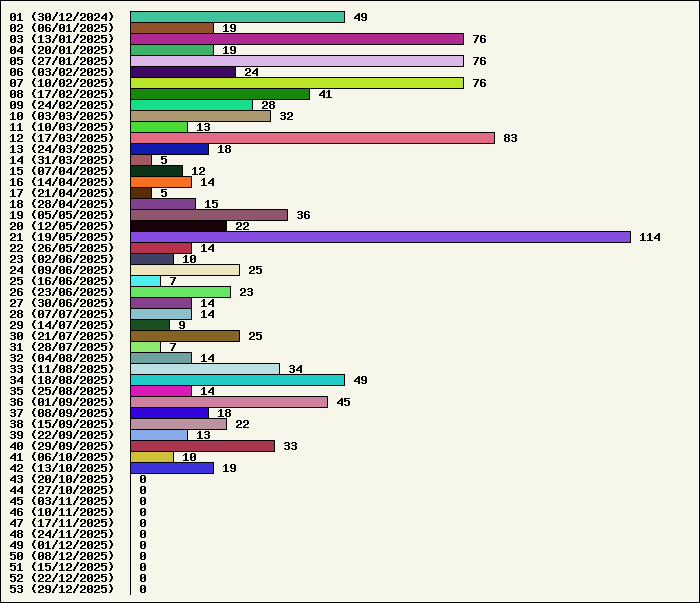 Logiciel | Semaine 42 | Mois 10 | Année 2025 | Total | Anti Yeux rouges | 0 | 2 | 48 | 134317 | AutoMail | 0 | 1 | 58 | 1794 | Autorun | 0 | 2 | 34 | 2737 | AxelCodBar (Codes barres) | 8 | 18 | 215 | 17530 | AxelFTP | 1 | 1 | 37 | 1810 | AxelTime | 1 | 2 | 63 | 6770 | AxelWebCam | 0 | 0 | 3 | 8248 | Boulier | 0 | 1 | 39 | 1586 | Castet | 0 | 0 | 31 | 1096 | Chiffres | 0 | 0 | 35 | 1862 | Compteur Internet | 1 | 1 | 56 | 2312 | Crédits | 0 | 0 | 33 | 1998 | Espérance de vie | 1 | 1 | 51 | 3546 | File Renamor | 0 | 0 | 34 | 1962 | FindReplaceInFiles | 0 | 1 | 33 | 1134 | Matricielle | 0 | 2 | 39 | 4558 | Mosaic Maker | 0 | 0 | 31 | 3045 | MultiClip | 0 | 1 | 33 | 2108 | MultiMail | 0 | 0 | 34 | 1072 | MultiZip | 0 | 0 | 34 | 1560 | MusicStart | 0 | 2 | 33 | 909 | RepPrinter | 0 | 0 | 53 | 4099 | Synchronizor | 1 | 1 | 43 | 3921 | Winetik | 0 | 0 | 0 | 1008 | Winfish | 0 | 0 | 0 | 673 | Wintab | 1 | 2 | 23 | 3786 | WorPad Axel | 0 | 0 | 35 | 144 | Yaskifo! analysor | 0 | 0 | 0 | 90 | Total | 14 | 38 | 1128 | 215675 |