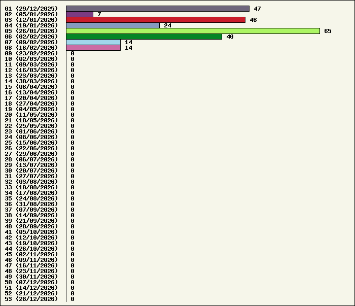 | Logiciel | Semaine 08 | Mois 02 | Année 2026 | Total | | Anti Yeux rouges | 0 | 0 | 4 | 134329 | | AutoMail | 1 | 12 | 36 | 1865 | | Autorun | 0 | 0 | 5 | 2747 | | AxelCodBar (Codes barres) | 9 | 24 | 59 | 17633 | | AxelFTP | 0 | 1 | 5 | 1823 | | AxelTime | 1 | 14 | 39 | 6847 | | AxelWebCam | 0 | 0 | 0 | 8249 | | Boulier | 0 | 0 | 5 | 1597 | | Castet | 0 | 0 | 3 | 1105 | | Chiffres | 0 | 0 | 3 | 1876 | | Compteur Internet | 0 | 2 | 8 | 2329 | | Crédits | 0 | 0 | 2 | 2006 | | Espérance de vie | 0 | 0 | 3 | 3558 | | File Renamor | 0 | 0 | 4 | 1980 | | FindReplaceInFiles | 0 | 0 | 5 | 1147 | | Matricielle | 0 | 0 | 6 | 4573 | | Mosaic Maker | 0 | 0 | 2 | 3052 | | MultiClip | 0 | 0 | 5 | 2119 | | MultiMail | 0 | 0 | 1 | 1081 | | MultiZip | 0 | 0 | 3 | 1570 | | MusicStart | 0 | 1 | 5 | 925 | | RepPrinter | 0 | 0 | 4 | 4113 | | Synchronizor | 0 | 0 | 4 | 3942 | | Winetik | 0 | 0 | 0 | 1008 | | Winfish | 0 | 0 | 0 | 673 | | Wintab | 1 | 3 | 4 | 3794 | | WorPad Axel | 0 | 0 | 3 | 154 | | Yaskifo! analysor | 0 | 0 | 0 | 90 | | Total | 12 | 57 | 218 | 216185 |