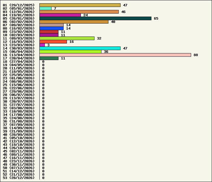 | Logiciel | Semaine 17 | Mois 04 | Année 2026 | Total | | Anti Yeux rouges | 1 | 5 | 11 | 134336 | | AutoMail | 1 | 7 | 46 | 1875 | | Autorun | 1 | 3 | 10 | 2752 | | AxelCodBar (Codes barres) | 1 | 4 | 88 | 17662 | | AxelFTP | 0 | 5 | 13 | 1831 | | AxelTime | 0 | 31 | 73 | 6881 | | AxelWebCam | 0 | 1 | 1 | 8250 | | Boulier | 1 | 4 | 9 | 1601 | | Castet | 0 | 3 | 9 | 1111 | | Chiffres | 0 | 3 | 9 | 1882 | | Compteur Internet | 0 | 5 | 19 | 2340 | | Crédits | 0 | 4 | 8 | 2012 | | Espérance de vie | 1 | 6 | 13 | 3568 | | File Renamor | 0 | 5 | 12 | 1988 | | FindReplaceInFiles | 1 | 4 | 12 | 1154 | | Matricielle | 1 | 26 | 33 | 4600 | | Mosaic Maker | 0 | 3 | 7 | 3057 | | MultiClip | 0 | 3 | 8 | 2122 | | MultiMail | 0 | 3 | 10 | 1090 | | MultiZip | 0 | 5 | 12 | 1579 | | MusicStart | 1 | 5 | 11 | 931 | | RepPrinter | 0 | 5 | 14 | 4123 | | Synchronizor | 0 | 7 | 17 | 3955 | | Winetik | 0 | 0 | 0 | 1008 | | Winfish | 0 | 0 | 0 | 673 | | Wintab | 0 | 1 | 6 | 3796 | | WorPad Axel | 1 | 3 | 8 | 159 | | Yaskifo! analysor | 0 | 0 | 0 | 90 | | Total | 10 | 151 | 459 | 216426 |