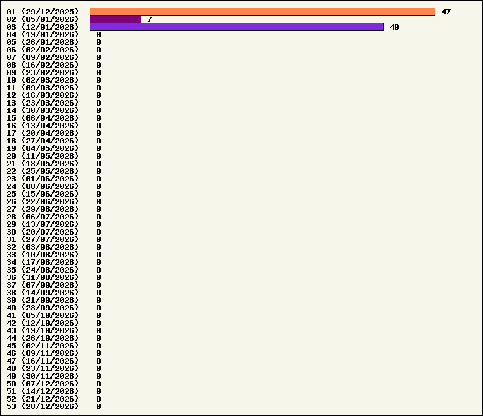 | Logiciel | Semaine 03 | Mois 01 | Année 2026 | Total | | Anti Yeux rouges | 3 | 4 | 4 | 134329 | | AutoMail | 4 | 6 | 6 | 1835 | | Autorun | 3 | 5 | 5 | 2747 | | AxelCodBar (Codes barres) | 3 | 9 | 9 | 17583 | | AxelFTP | 1 | 3 | 3 | 1821 | | AxelTime | 5 | 8 | 8 | 6816 | | AxelWebCam | 0 | 0 | 0 | 8249 | | Boulier | 2 | 5 | 5 | 1597 | | Castet | 1 | 3 | 3 | 1105 | | Chiffres | 1 | 3 | 3 | 1876 | | Compteur Internet | 1 | 5 | 5 | 2326 | | Crédits | 1 | 2 | 2 | 2006 | | Espérance de vie | 1 | 2 | 2 | 3557 | | File Renamor | 0 | 3 | 3 | 1979 | | FindReplaceInFiles | 2 | 5 | 5 | 1147 | | Matricielle | 4 | 5 | 5 | 4572 | | Mosaic Maker | 0 | 2 | 2 | 3052 | | MultiClip | 1 | 4 | 4 | 2118 | | MultiMail | 0 | 1 | 1 | 1081 | | MultiZip | 0 | 2 | 2 | 1569 | | MusicStart | 3 | 4 | 4 | 924 | | RepPrinter | 1 | 4 | 4 | 4113 | | Synchronizor | 0 | 3 | 3 | 3941 | | Winetik | 0 | 0 | 0 | 1008 | | Winfish | 0 | 0 | 0 | 673 | | Wintab | 0 | 0 | 0 | 3790 | | WorPad Axel | 1 | 3 | 3 | 154 | | Yaskifo! analysor | 0 | 0 | 0 | 90 | | Total | 38 | 91 | 91 | 216058 |