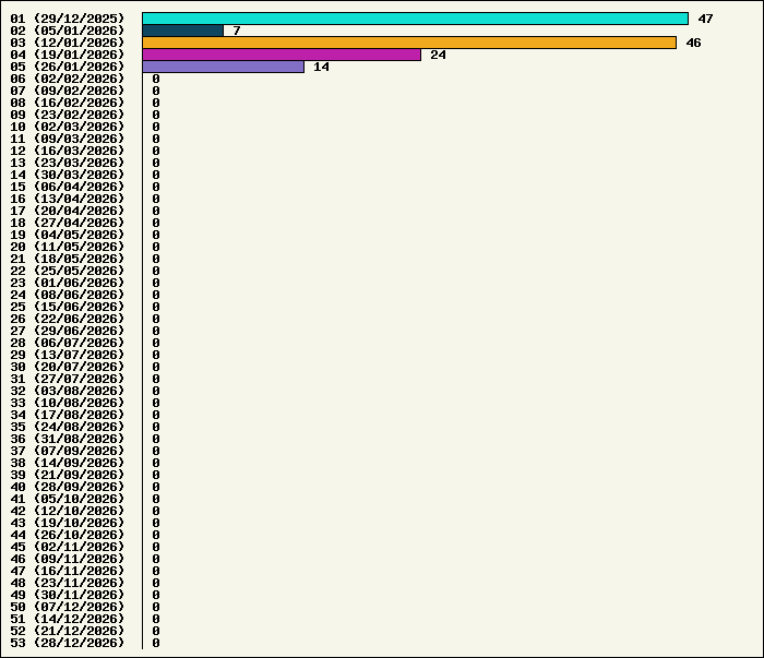 | Logiciel | Semaine 05 | Mois 01 | Année 2026 | Total | | Anti Yeux rouges | 0 | 4 | 4 | 134329 | | AutoMail | 3 | 16 | 16 | 1845 | | Autorun | 0 | 5 | 5 | 2747 | | AxelCodBar (Codes barres) | 5 | 21 | 21 | 17595 | | AxelFTP | 0 | 3 | 3 | 1821 | | AxelTime | 3 | 17 | 17 | 6825 | | AxelWebCam | 0 | 0 | 0 | 8249 | | Boulier | 0 | 5 | 5 | 1597 | | Castet | 0 | 3 | 3 | 1105 | | Chiffres | 0 | 3 | 3 | 1876 | | Compteur Internet | 0 | 5 | 5 | 2326 | | Crédits | 0 | 2 | 2 | 2006 | | Espérance de vie | 0 | 2 | 2 | 3557 | | File Renamor | 0 | 4 | 4 | 1980 | | FindReplaceInFiles | 0 | 5 | 5 | 1147 | | Matricielle | 0 | 6 | 6 | 4573 | | Mosaic Maker | 0 | 2 | 2 | 3052 | | MultiClip | 0 | 5 | 5 | 2119 | | MultiMail | 0 | 1 | 1 | 1081 | | MultiZip | 0 | 2 | 2 | 1569 | | MusicStart | 0 | 4 | 4 | 924 | | RepPrinter | 0 | 4 | 4 | 4113 | | Synchronizor | 0 | 3 | 3 | 3941 | | Winetik | 0 | 0 | 0 | 1008 | | Winfish | 0 | 0 | 0 | 673 | | Wintab | 0 | 0 | 0 | 3790 | | WorPad Axel | 0 | 3 | 3 | 154 | | Yaskifo! analysor | 0 | 0 | 0 | 90 | | Total | 11 | 125 | 125 | 216092 |
