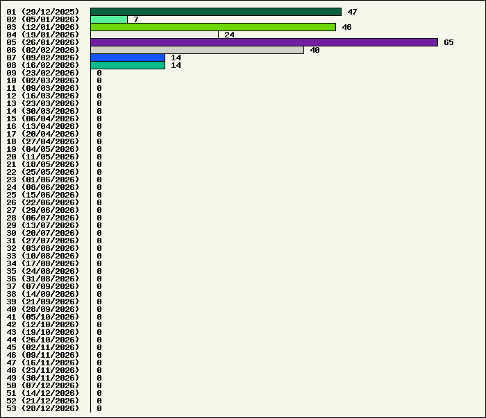 | Logiciel | Semaine 08 | Mois 02 | Année 2026 | Total | | Anti Yeux rouges | 0 | 0 | 4 | 134329 | | AutoMail | 1 | 12 | 36 | 1865 | | Autorun | 0 | 0 | 5 | 2747 | | AxelCodBar (Codes barres) | 9 | 24 | 59 | 17633 | | AxelFTP | 0 | 1 | 5 | 1823 | | AxelTime | 1 | 14 | 39 | 6847 | | AxelWebCam | 0 | 0 | 0 | 8249 | | Boulier | 0 | 0 | 5 | 1597 | | Castet | 0 | 0 | 3 | 1105 | | Chiffres | 0 | 0 | 3 | 1876 | | Compteur Internet | 0 | 2 | 8 | 2329 | | Crédits | 0 | 0 | 2 | 2006 | | Espérance de vie | 0 | 0 | 3 | 3558 | | File Renamor | 0 | 0 | 4 | 1980 | | FindReplaceInFiles | 0 | 0 | 5 | 1147 | | Matricielle | 0 | 0 | 6 | 4573 | | Mosaic Maker | 0 | 0 | 2 | 3052 | | MultiClip | 0 | 0 | 5 | 2119 | | MultiMail | 0 | 0 | 1 | 1081 | | MultiZip | 0 | 0 | 3 | 1570 | | MusicStart | 0 | 1 | 5 | 925 | | RepPrinter | 0 | 0 | 4 | 4113 | | Synchronizor | 0 | 0 | 4 | 3942 | | Winetik | 0 | 0 | 0 | 1008 | | Winfish | 0 | 0 | 0 | 673 | | Wintab | 1 | 3 | 4 | 3794 | | WorPad Axel | 0 | 0 | 3 | 154 | | Yaskifo! analysor | 0 | 0 | 0 | 90 | | Total | 12 | 57 | 218 | 216185 |