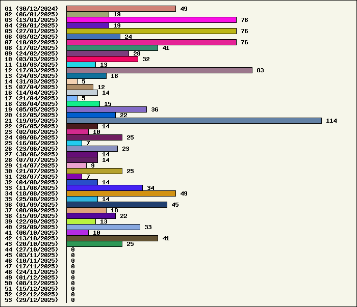 Logiciel | Semaine 43 | Mois 10 | Année 2025 | Total | Anti Yeux rouges | 1 | 4 | 50 | 134319 | AutoMail | 1 | 3 | 60 | 1796 | Autorun | 0 | 3 | 35 | 2738 | AxelCodBar (Codes barres) | 5 | 24 | 221 | 17536 | AxelFTP | 1 | 3 | 39 | 1812 | AxelTime | 1 | 4 | 65 | 6772 | AxelWebCam | 0 | 0 | 3 | 8248 | Boulier | 1 | 3 | 41 | 1588 | Castet | 1 | 2 | 33 | 1098 | Chiffres | 1 | 2 | 37 | 1864 | Compteur Internet | 1 | 3 | 58 | 2314 | Crédits | 1 | 1 | 34 | 1999 | Espérance de vie | 1 | 2 | 52 | 3547 | File Renamor | 1 | 2 | 36 | 1964 | FindReplaceInFiles | 1 | 3 | 35 | 1136 | Matricielle | 1 | 5 | 42 | 4561 | Mosaic Maker | 0 | 1 | 32 | 3046 | MultiClip | 1 | 3 | 35 | 2110 | MultiMail | 1 | 2 | 36 | 1074 | MultiZip | 1 | 2 | 36 | 1562 | MusicStart | 1 | 4 | 35 | 911 | RepPrinter | 1 | 2 | 55 | 4101 | Synchronizor | 1 | 3 | 45 | 3923 | Winetik | 0 | 0 | 0 | 1008 | Winfish | 0 | 0 | 0 | 673 | Wintab | 0 | 2 | 23 | 3786 | WorPad Axel | 1 | 2 | 37 | 146 | Yaskifo! analysor | 0 | 0 | 0 | 90 | Total | 25 | 85 | 1175 | 215722 |