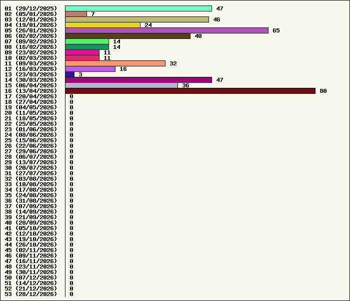 | Logiciel | Semaine 17 | Mois 04 | Année 2026 | Total | | Anti Yeux rouges | 0 | 4 | 10 | 134335 | | AutoMail | 1 | 7 | 46 | 1875 | | Autorun | 0 | 2 | 9 | 2751 | | AxelCodBar (Codes barres) | 0 | 3 | 87 | 17661 | | AxelFTP | 0 | 5 | 13 | 1831 | | AxelTime | 0 | 31 | 73 | 6881 | | AxelWebCam | 0 | 1 | 1 | 8250 | | Boulier | 0 | 3 | 8 | 1600 | | Castet | 0 | 3 | 9 | 1111 | | Chiffres | 0 | 3 | 9 | 1882 | | Compteur Internet | 0 | 5 | 19 | 2340 | | Crédits | 0 | 4 | 8 | 2012 | | Espérance de vie | 0 | 5 | 12 | 3567 | | File Renamor | 0 | 5 | 12 | 1988 | | FindReplaceInFiles | 0 | 3 | 11 | 1153 | | Matricielle | 0 | 25 | 32 | 4599 | | Mosaic Maker | 0 | 3 | 7 | 3057 | | MultiClip | 0 | 3 | 8 | 2122 | | MultiMail | 0 | 3 | 10 | 1090 | | MultiZip | 0 | 5 | 12 | 1579 | | MusicStart | 0 | 4 | 10 | 930 | | RepPrinter | 0 | 5 | 14 | 4123 | | Synchronizor | 0 | 7 | 17 | 3955 | | Winetik | 0 | 0 | 0 | 1008 | | Winfish | 0 | 0 | 0 | 673 | | Wintab | 0 | 1 | 6 | 3796 | | WorPad Axel | 1 | 3 | 8 | 159 | | Yaskifo! analysor | 0 | 0 | 0 | 90 | | Total | 2 | 143 | 451 | 216418 |