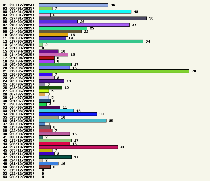 | Logiciel | Semaine 50 | Mois 12 | Année 2025 | Total | | AxelCruciverbiste | 0 | 1 | 41 | 490 | | AxelPass (Mots de passe) | 0 | 0 | 36 | 482 | | Bilan de compétences | 0 | 0 | 43 | 1028 | | Biorythm 3.0 | 0 | 1 | 42 | 666 | | Calculatrice | 0 | 0 | 0 | 246 | | Carnet d'adresses | 3 | 5 | 88 | 1586 | | CDPhotoAlbum | 0 | 0 | 0 | 191 | | Chiffres et lettres | 0 | 1 | 39 | 798 | | Diaporama Maker | 0 | 0 | 0 | 407 | | Dominos | 0 | 1 | 39 | 896 | | Dominos (english version) | 0 | 0 | 0 | 338 | | Emploi du temps | 0 | 0 | 3 | 259 | | Etiquettes PRO | 0 | 0 | 51 | 3311 | | Formulaires PRO | 3 | 3 | 71 | 860 | | Géomancie | 0 | 0 | 0 | 312 | | Gesnotes | 0 | 0 | 0 | 392 | | GestComptes | 0 | 0 | 71 | 5438 | | Graphologie | 0 | 1 | 110 | 1269 | | Le journal de votre naissance | 0 | 3 | 38 | 4405 | | Maths | 0 | 0 | 0 | 195 | | Métro | 0 | 0 | 0 | 202 | | Moyennes | 0 | 0 | 0 | 100 | | MP3 audio creator | 0 | 0 | 0 | 512 | | Organigrammes | 0 | 0 | 0 | 239 | | Papwrite | 0 | 0 | 0 | 37 | | Pense-bête | 0 | 0 | 48 | 571 | | Photocopieur | 0 | 0 | 40 | 752 | | PhotoNet | 0 | 0 | 39 | 503 | | PhotoNet édition spéciale Artprod | 0 | 0 | 0 | 1 | | PhotoPrinter | 0 | 0 | 30 | 756 | | Planning | 0 | 0 | 0 | 197 | | Posters | 0 | 0 | 3 | 1220 | | Winbase | 0 | 0 | 0 | 284 | | Total | 6 | 16 | 832 | 28943 |